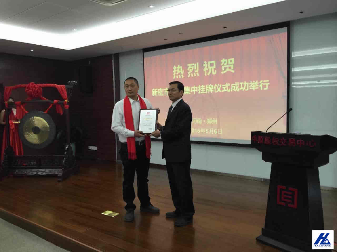2016年5月6日上午,新密市36家企业集中在中原股权交易中心路演厅举行挂牌仪式,据了解,这是中原股权交易中心成立以来,批次挂牌数量最多的一次,而新密市也是挂牌企业数量较多的县市之一。