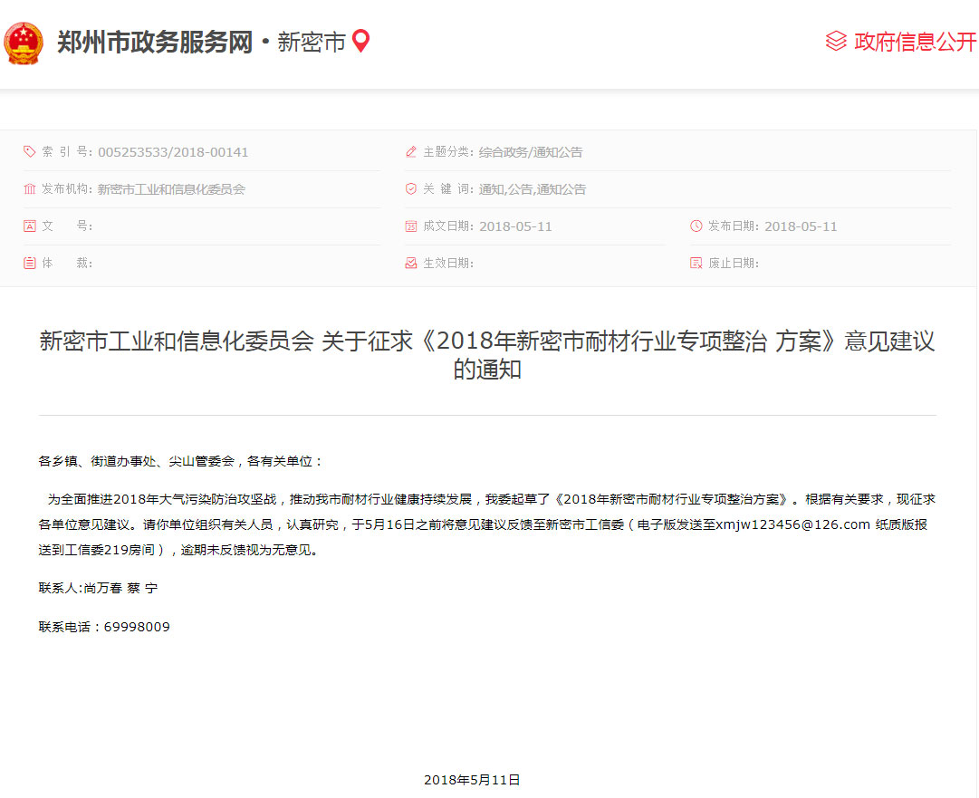 近年来,新密市按照生态文明建设的总要求高度重视耐材产业绿色发展,通过政策支持,强力推动耐材行业联合重组、淘汰产能、清洁生产,完成耐材企业“清洁转身”,实现耐材行业绿色可持续发展。绿色转型升级促进了耐材行业的快速健康发展,今年上半年,耐材产量、产值、税收各项指标快速增长,对全市经济发展起到了有力支撑。国家生态环境部大气环境管理司副司长李培对新密的耐材行业技改提升及环境污染整治效果给予肯定。